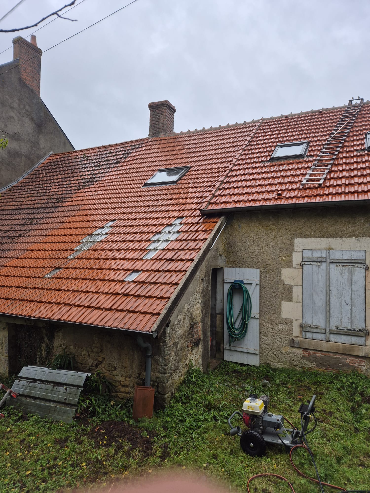 La mousse, les feuilles et les salissures fragilisent les matériaux et accélèrent le vieillissement de votre toiture. Nous vous proposons un nettoyage en profondeur, adapté à la nature de votre couverture (tuiles, ardoises, bac acier…), suivi d’un traitement anti-mousse et hydrofuge si nécessaire. Un entretien régulier permet de conserver une toiture propre, fonctionnelle et résistante aux intempéries. C’est un investissement intelligent pour éviter les réparations coûteuses à long terme.
